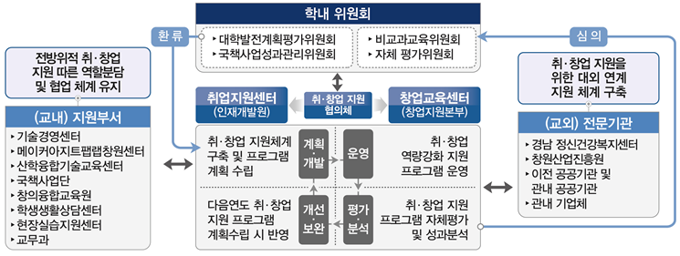 인재개발원 취업지원센터와 창업지원본부 창업교육센터는 학생들의 취업 및 창업(교육) 지원 업무 총괄지원
